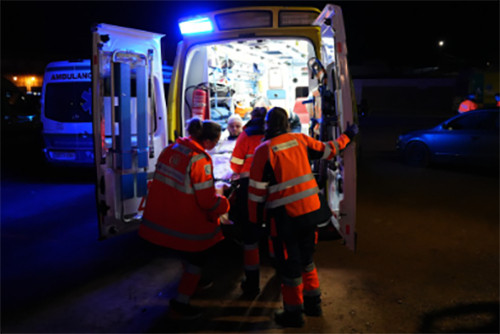 伤者被抬上救护车天空新闻网